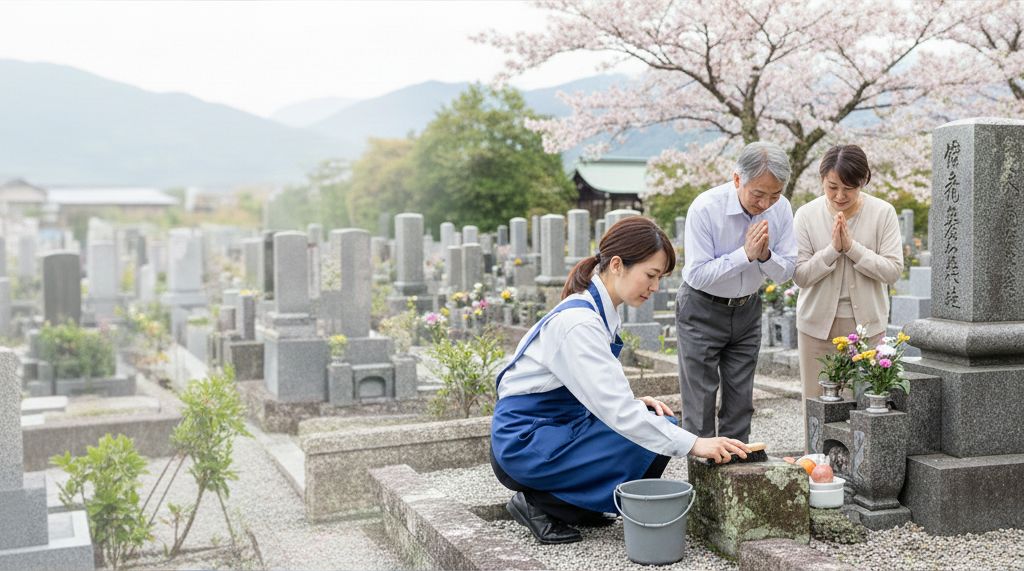 遠方にお住まいの方や、ご多忙でお墓参りが難しい方に代わり、心を込めてお墓の清掃・お参りを代行いたします。